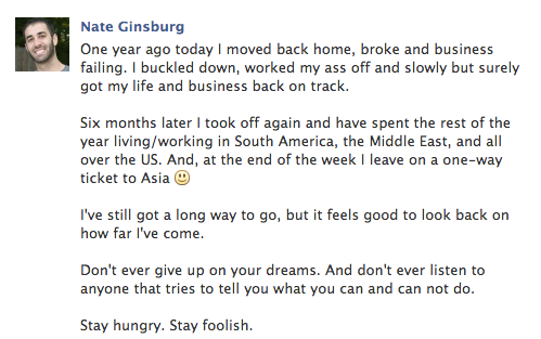 He’s one of the hardest working people I know — dedicated to refusing the charge of having to work all of your life in an office and instead carving your own path, traveling, and doing the kind of work that’s fun and challenging.