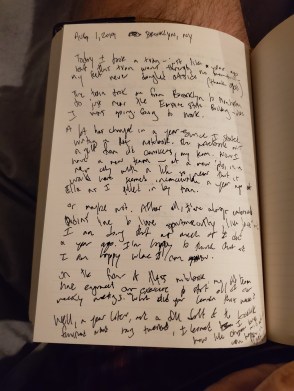 A lot has changed in a year since I started writing in this notebook. The notebook was a gift from old coworkers, my team. Now I have a new team — at a new job, in a new city with a life so new that it would have seem inconceivable a year ago at Ella as I pulled up by train.
