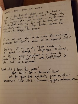For one year now, I’ve been carrying around and writing in a leather bound notebook that was gifted to me. The first entry is from August 1, 2018, written in a town in Sri Lanka called Ella. The latest entry, written today—August 1, 2019—is copied, along with the former below.